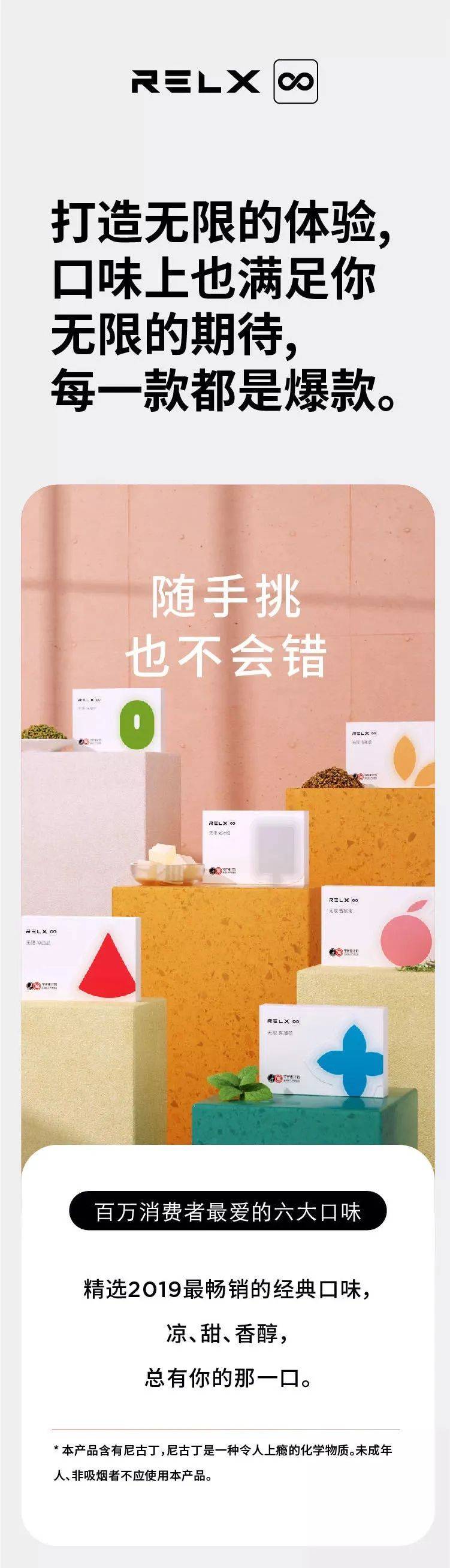 悦刻无限的口味基调与一代很类似,精选2019年最畅销的经典口味,凉,甜,香醇,总有你的那一口。