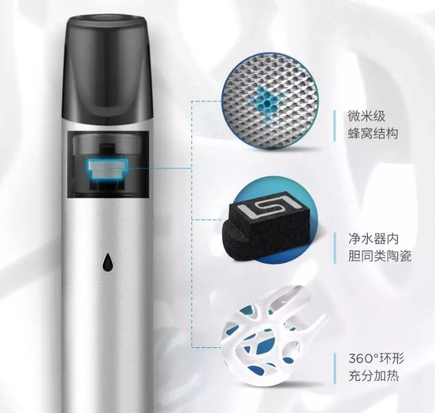 2代阿尔法的雾化芯在1代烟弹基础上保持了蜂窝陶瓷芯,将烟弹的气道从直线改为环形。烟雾减小,但口味解析的细腻程度提升了。