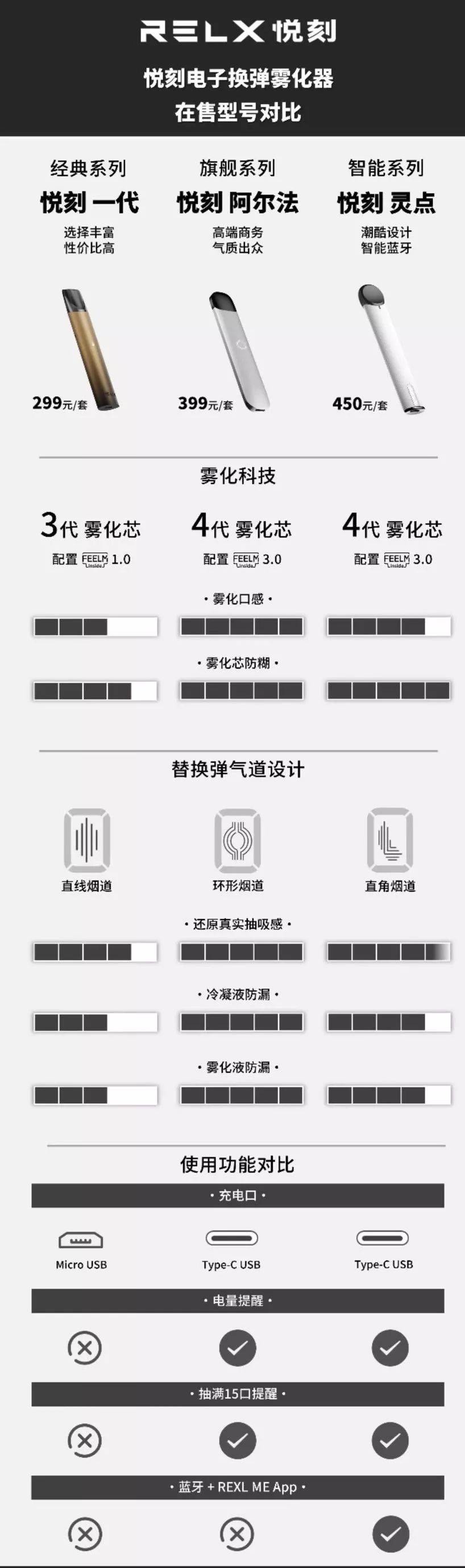 悦刻1代–悦刻2代阿尔法–悦刻3代灵点
