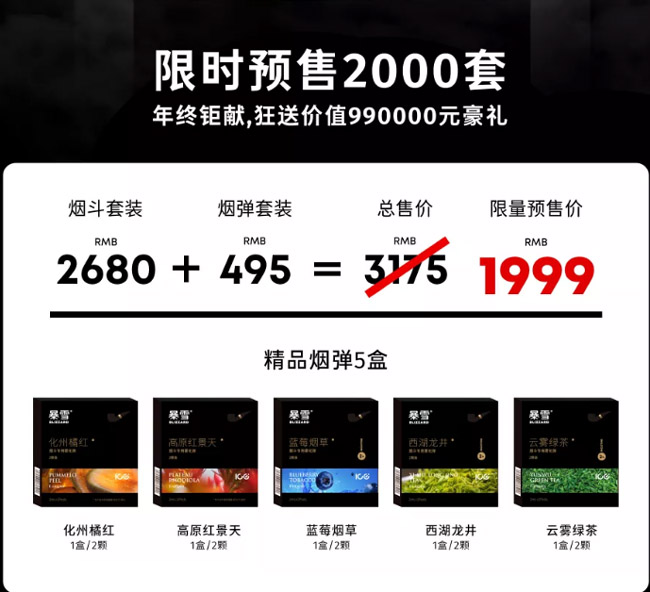 这零售指导价的确有点贵,但目前有一个限时优惠:一个套装+5盒烟弹,卖1999元。