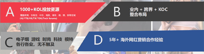 3. 渠道资源丰富且精准,拥有1000+优质红人海外全渠道推广资源,覆盖全球,KOL响应度高,此外,拥有论坛、科技网等其他大流量推广渠道;