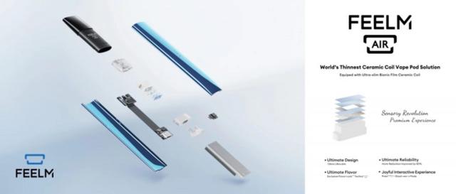 今年1月18日,思摩尔在英国伦敦推出了新一代电子雾化解决方案FEELM Air,引领行业进入超薄时代,为行业发展拓宽增长空间。据悉,FEELM Air采用了纳米级真空覆膜工艺,在减害性、口感还原、漏液率、能效比上均有大幅提升,被誉为全球超薄雾化解决方案。