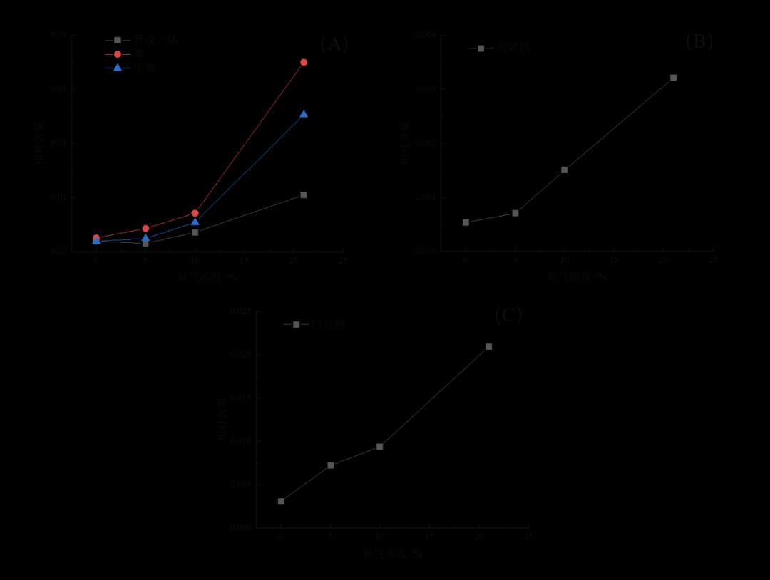 图2 氧气浓度对挥发性有机化合物释放的影响