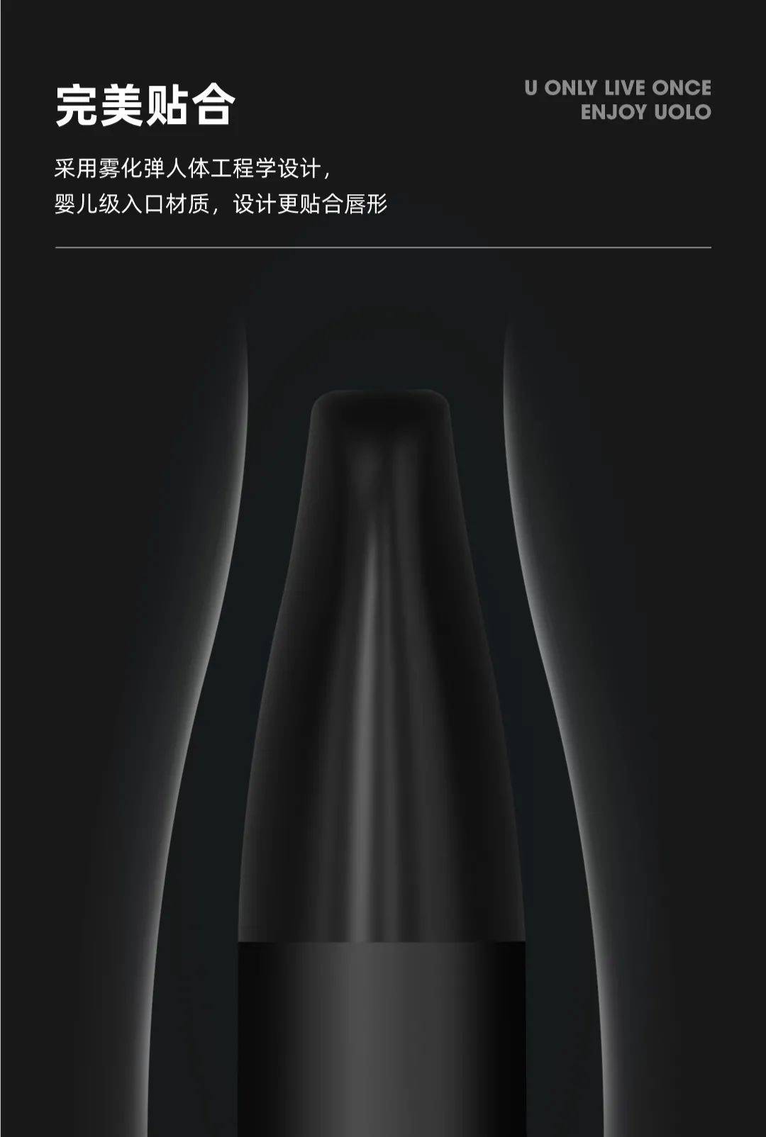 ▍探索之源 如悦制造 以人为本,注入人机交互新体验 UOLO如悦认为,用户对产品的青睐不仅局限于炫酷的视觉化体验,更源于与产品细节的感性互动。 产品表面镂空雕刻的 “UOLO “LOGO设计抽吸式感应灯源,只需轻轻呼吸,灯源便泛起灵动的闪烁;8S断电保护,智能雾化芯保护,为用户提供多一道安全屏障;婴儿奶嘴也在用的塑胶材质,完美贴合唇形设计;15口智能振动反馈,提升人机亲密度。