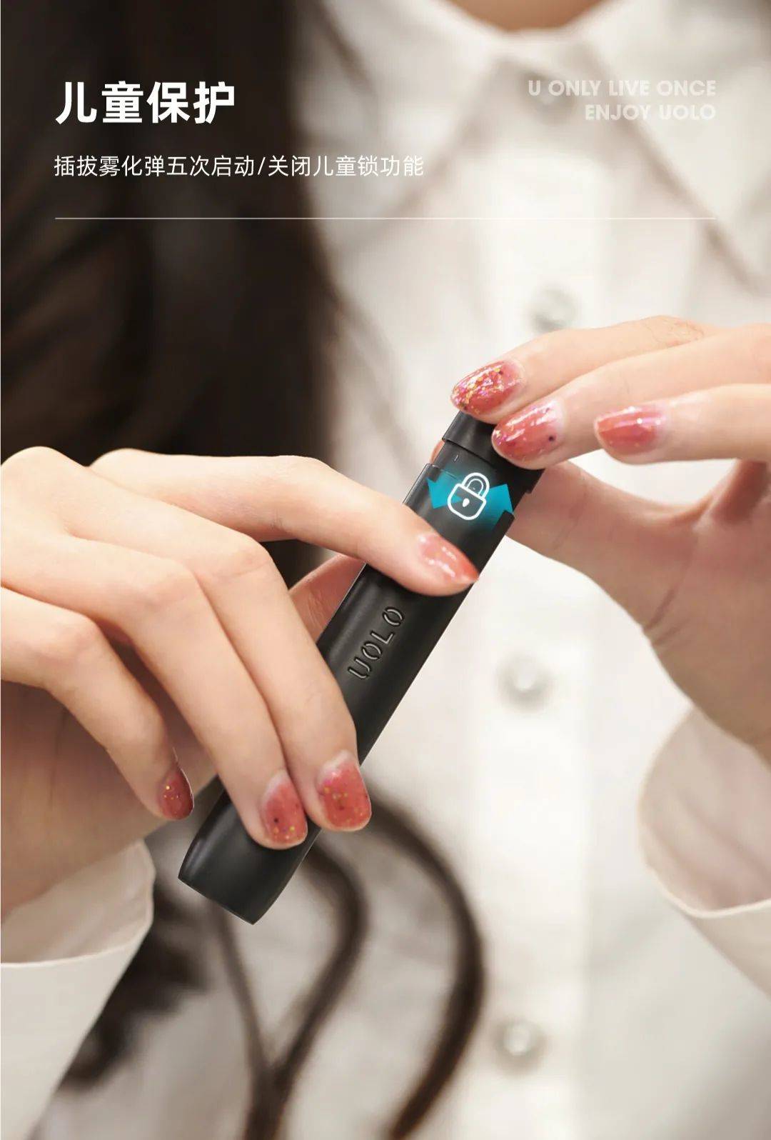 在赋予产品更多生命力之余,UOLO如悦也坚决拥护国家政策《关于进一步保护未成年人免受电子烟侵害的通告》,增加“儿童锁”功能,只需拔插五次雾化弹,即可实现锁口的开启/关闭功能,多方面杜绝未成年人使用电子烟。