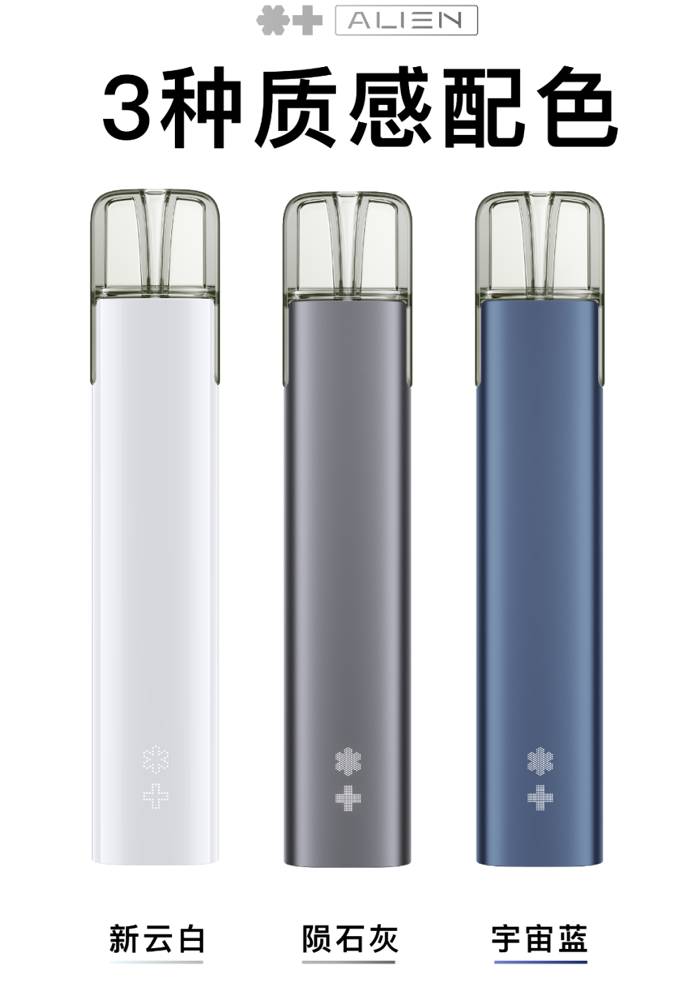 在销售策略上,ALIEN系列采取的销售策略是杆弹分离。其中宇宙蓝、陨石灰两种配色,单杆套装为268元/套;新云白配色,单杆套装288元/套。雾化弹则为一盒两颗装,售价为69元。烟弹目前共有6种口味可先,5种经典口味(原味烟草、冰山薄荷、绿豆冰沙、脆心苹果、冰镇西瓜)和新增定制的口味西柚百香果。
