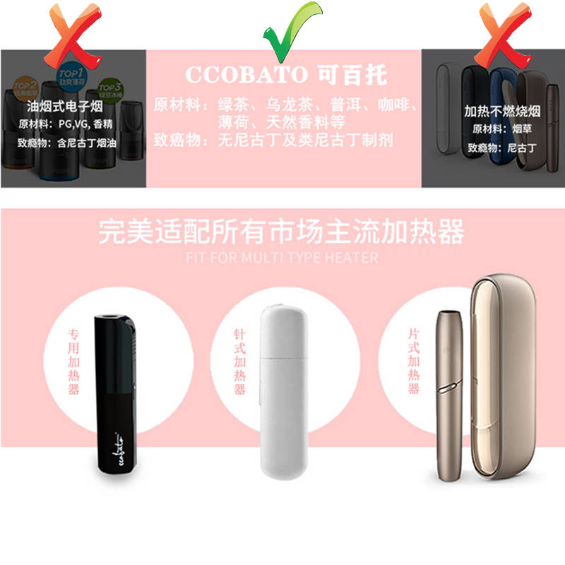 CCOBATO可百托加热不燃烧烟弹是一款革命性的健康产品(不含尼古丁、重金属、甲醛),在不含任何烟草的基础上,为您带来最佳的真实或熟悉的Heat Not Burn吸烟感觉,适用于所有人。