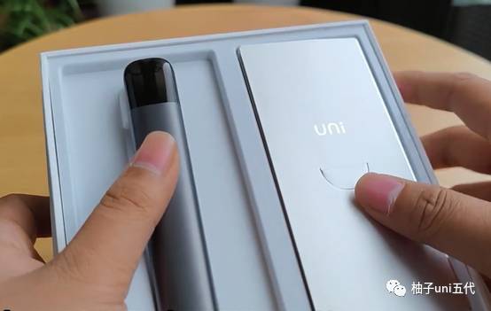 烟弹呢?也是一样的,正反插都可以。除此之外呢?这一代的uni的烟弹也做了升级,首先提升了尼古丁的含量,做到了3.5%,容量也做了升级,做到了2.1毫升,首先,尼古丁的提升了,对我们来说肯定是更解瘾,看出来这一次定位的中高端,也是让我们的整体使用效率变得更高一点,这一颗风情蜜瓜口味呢,也是给我们一些惊喜好的。