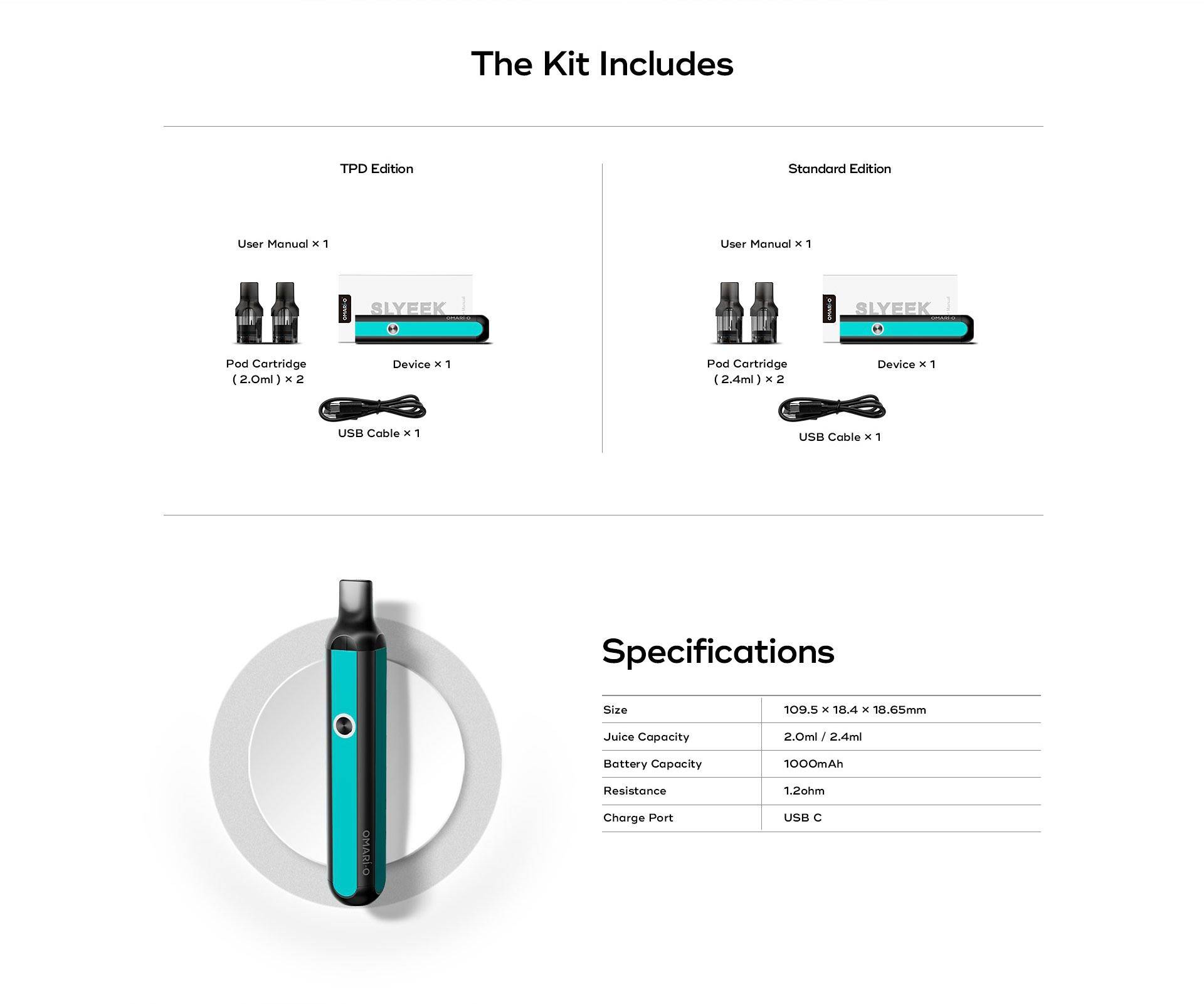 - Omari-o Slyeek Pod系统套件1000mAh标准版随附