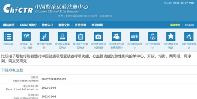 (图:悦刻发起的电子烟临床研究已在中国临床试验注册中心成功注册)