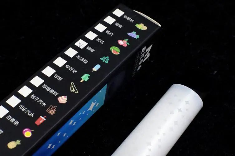 今天与大家分享的就是这个发光一次性主题的麦克草本品牌小烟。从上图包装盒中可以看到它一共有13个口味,而多出来的这一个用贴纸标识的“冰泉”是第14个口味还是说顶替猕猴桃口味这里并不清楚。