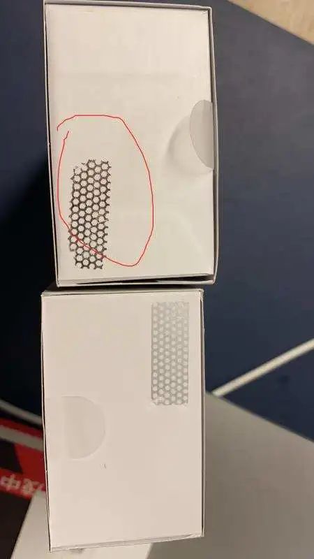 根据当事人描述,他是通过微商在线上渠道购买的悦刻五代产品花费了180元,然而货物与正品有着很大差异。 首先从包装上,生产日期和防伪标志的印刷与正品不符,字号偏大,颜色偏深。更为重要的是,当事人购买的产品防伪码的印刷与正品有很大区别,码涂层和正品也存在差异,涂层的用料与正品不一致。