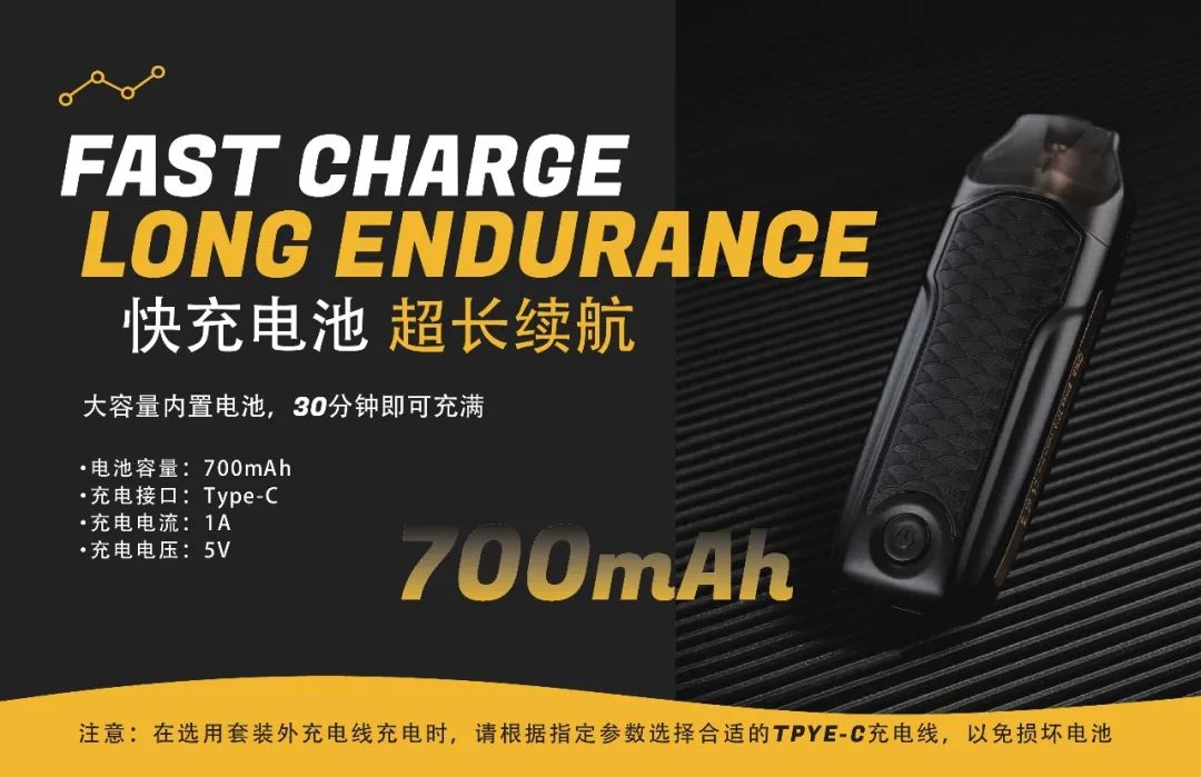 CKS弗拉克采用了700mAh大容量内置电池,使用户不再为电量而焦虑。Type-C快充接口,搭配合适的充电线材最高可达到5V1A的充电电流,30分钟即可充满,美味不再需要漫长的等待。