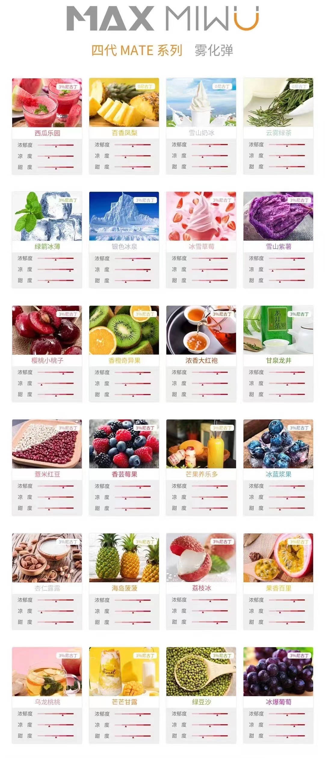 MAX迷客烟弹有通用悦刻一代的,也有通用悦客四代五代的烟弹。口感不输原装的,迷雾烟弹口味目前上市的有30多款口味。