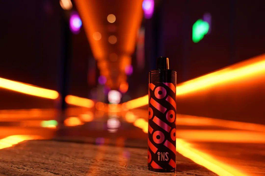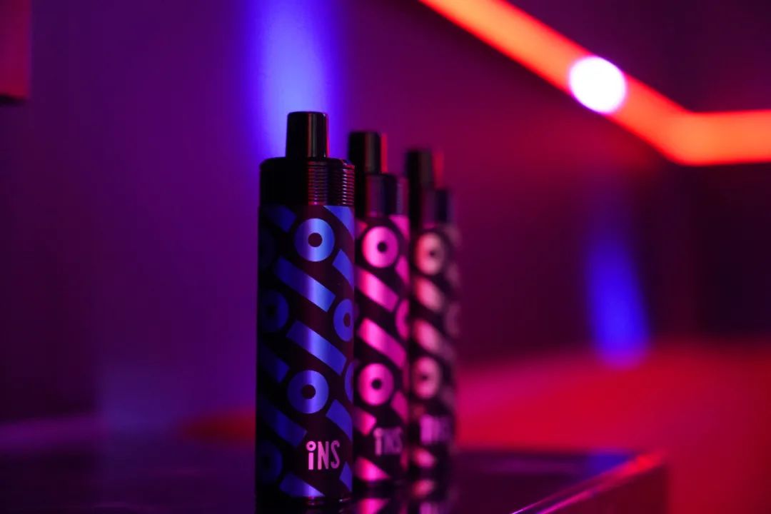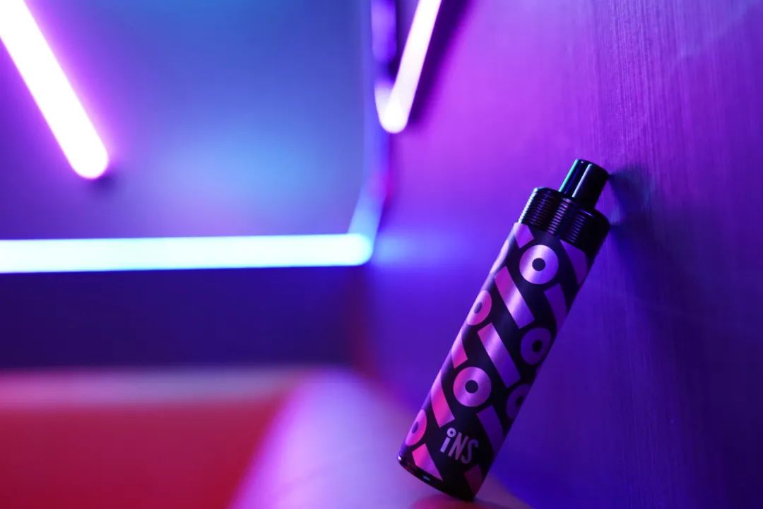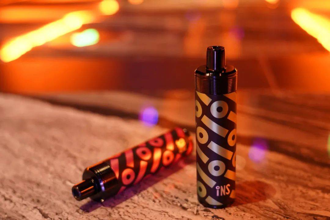 小闪机身为不锈钢管,圆柱形的外观依旧选择了贴纸的方式,贴纸设计的非常炫酷,基于INS logo的线条图案。整体给人的第一印象就是潮流与时尚,充满大烟雾的产品标签。