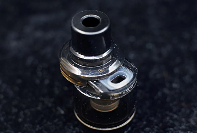 仓体的容量为2ml,带有一个可拆卸的510规格滴嘴以及可更换的芯子结构,与此同时在油仓的底部可以看到有2个进气孔,与杆身的开口对应进行旋转就可以调节进气大,而根据其进气量的通畅度来看,这是一款不折不扣的纯肺吸大烟雾设定。