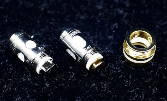 原厂提供的是2颗0.5Ω的芯子,此外还有一个0.25Ω的型号可供选配,两者在使用时都需要配合上图右侧单独的电极连接件使用。