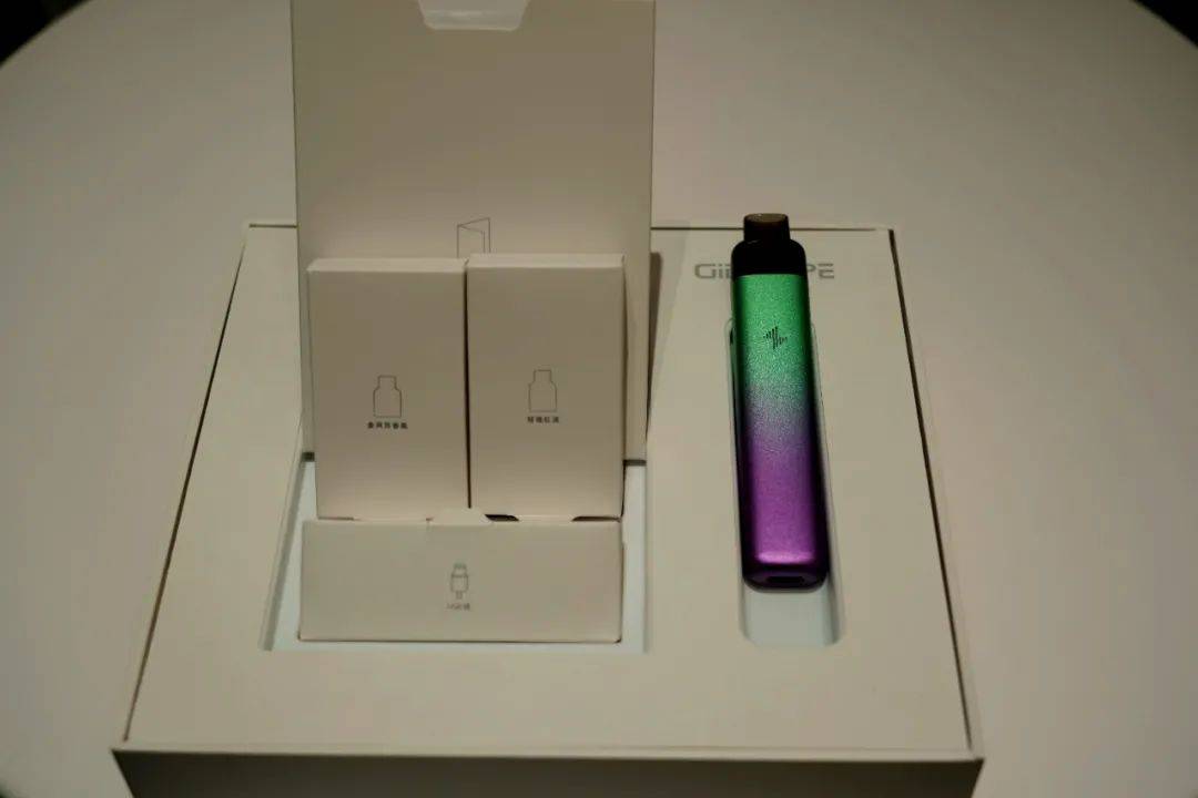 我们视频中拍摄的雾化杆颜色为绚丽绿紫,礼雾共6种配色方案,从官宣图来看,都是蛮时尚个性的。