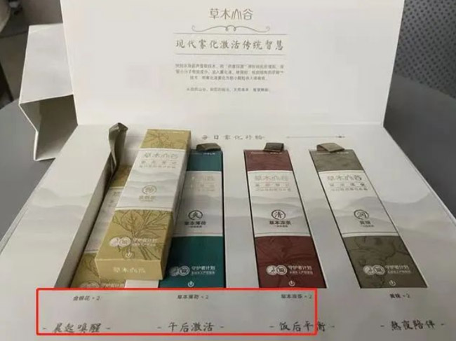 而早在去年的6月,悦刻的“草本山谷”就已经铺货到门店,定位大健康,当时的产品有草本山谷礼盒式包装,含4个口味(金银花、草本薄荷、草本凉茶、黄精),均为0尼古丁,说到底也是健康草本类别。