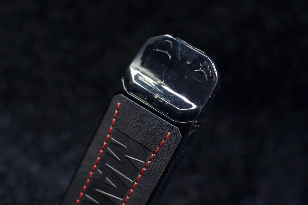 机身的正反面都是用了一个带缝线的仿皮材质贴片,手感质感都属于上乘。它的进气口设置在顶端的两侧。(PS:久违的WOTOFO标识啊~)