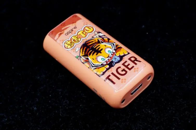 它使用了圆柱体的包装盒,把上方铝箔掀开后可见其内容物。那为什么说跟盲盒有关系呢?其实这款产品的“盲盒”元素仅仅是在供电的主题上,因为它的销售方式是买2盒烟弹送一个主机,烟弹口味可以自选,不过这个主机的颜色、款式图案等就是完全随机性的,并且据说还有限量版。