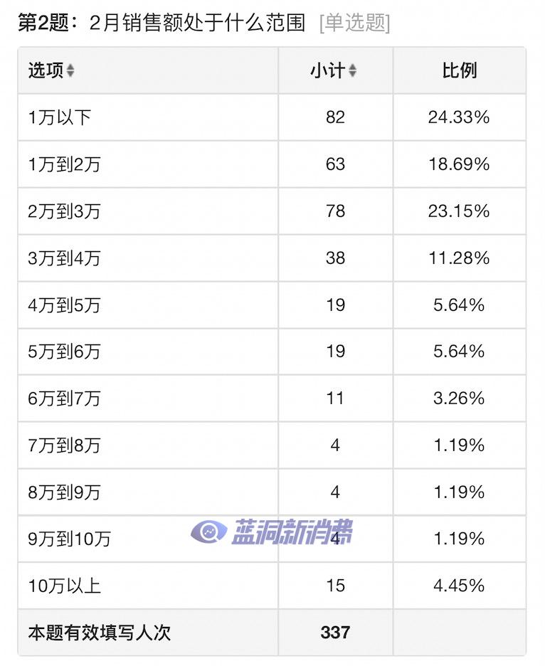 2月是一个让人休养生息的月份,但在生意上也是一个令人悲伤的月份,恰逢春节假期,不少店主生意一落千丈,从调查我们也可以看出,很多店主销售额不尽人意。