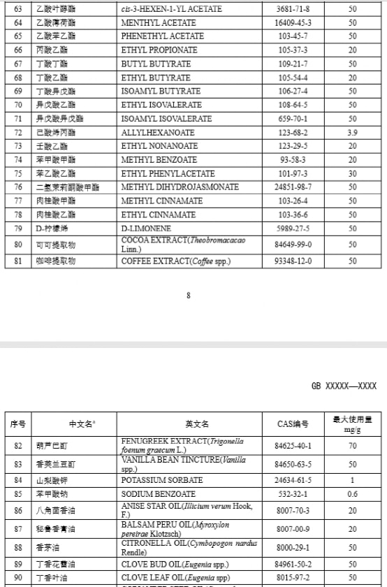 但仔细发现,相比2021年11月国标版本,口感将会更丰富。白名单中可可提取物、柠檬油、椒样薄荷油等仍然在列,口味上仍有一定的可调配空间,只是做不出水果特征香。