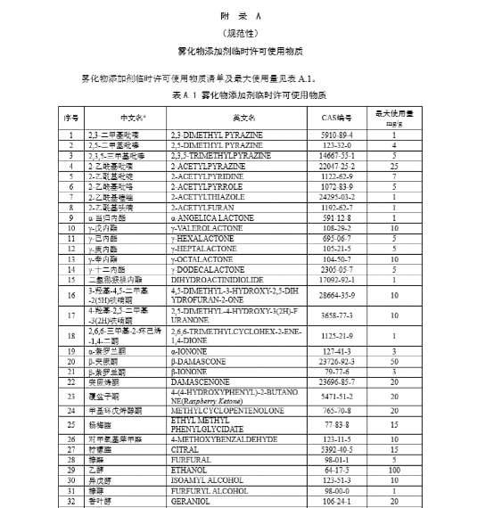 在《电子烟国标(二次征求意见稿)》中明确,许可添加有101种雾化物添加剂“白名单”,这对比第一次国标的122种,少掉了20多种。比如甜橙油、桔子油、苦橙花油、留兰香油等添加剂已不在名单列,基本是去“果味”化。
