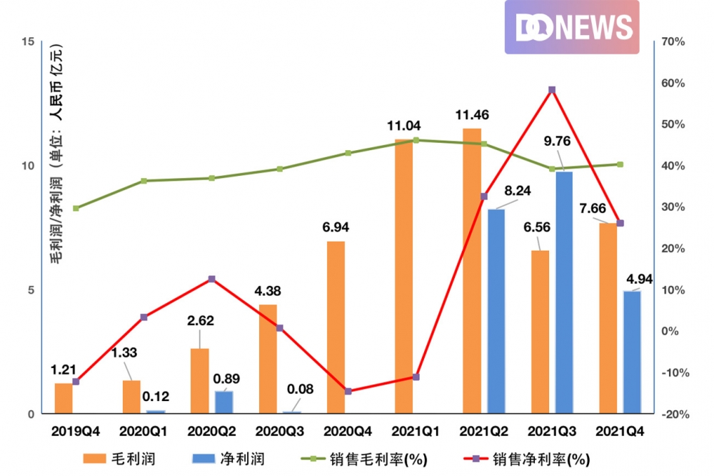 图7:雾芯科技单季度毛利润/净利润表 来源:雾芯科技财报 制图:DoNews