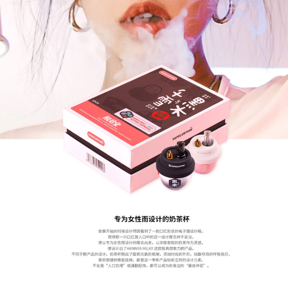 设计师因看到了一款口红形状的电子烟规划稿,觉得把一只口红放进口中的这一规划理念井不妥当,便以专为女人而规划的理念出发,以浓郁香甜的奶茶作为创意,便规划出了般若hannya milky 这款极具想象力的产品。不同于期产品的规划,奶茶杯跳出了般若元素的结构,灵动时尚的外形,炫酷夺目的呼吸亮灯,柔软便捷的橡胶挂绳,都是这一季新产品别具一格的规划元素。不论是”进口饮用”或通勤配饰,都可以成为你身边的”最佳伴侣”。