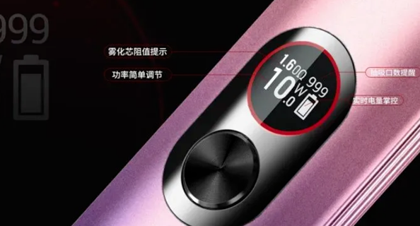 轻浮而流通的屏幕上,当前使用功率、雾化杆电量状况、已抽吸口数和雾化芯阻值等数值,实时可见。