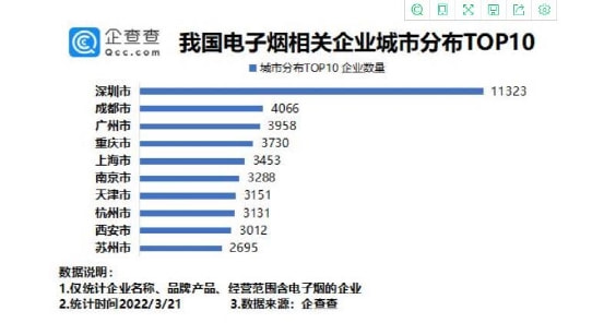 | 深圳以1.13万家电子烟相关企业排名第一