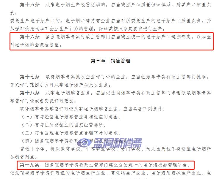 总的来说,以前品牌方用来防伪、防串货的产品溯源技术,后续会普及到工厂生产方面。毕竟管理办法里面已经明文提到了,“国务院烟草专卖行政主管部门应当建立统一的电子烟产品追溯制度,以加强对电子烟的全流程管理。”