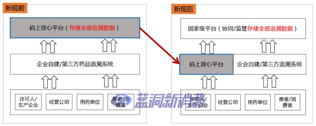 数据存储及架构的改变是此次药品信息化追溯建设的核心内容。最新出台的《药品生产监督管理法》已于2020年7月1日起正式施行,新规实施后,企业药品追溯数据将统一由国家协同/监管平台来进行存储,而企业的药品追溯系统如何与国家协同平台进行对接将是广大药企的“必修课”