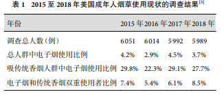 2015~2018年美国成年人使用烟草情况的调查结果见表 1。