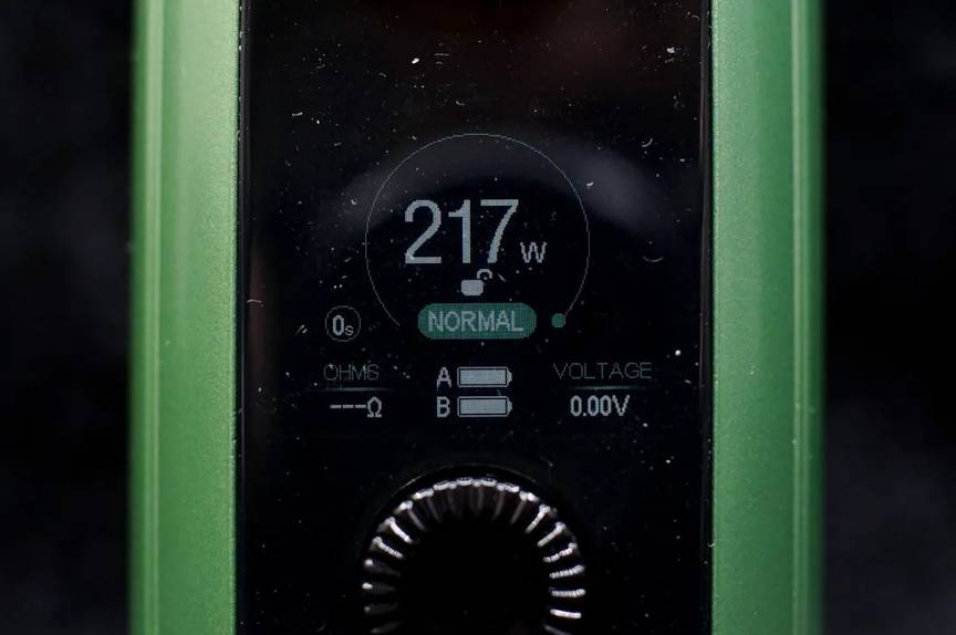 作为一个主打大功率高输出的玩意儿,它并什么温控、自定义这些花里胡哨的功能。简单的三挡输出设置,电压模式和直通模式就足够了。