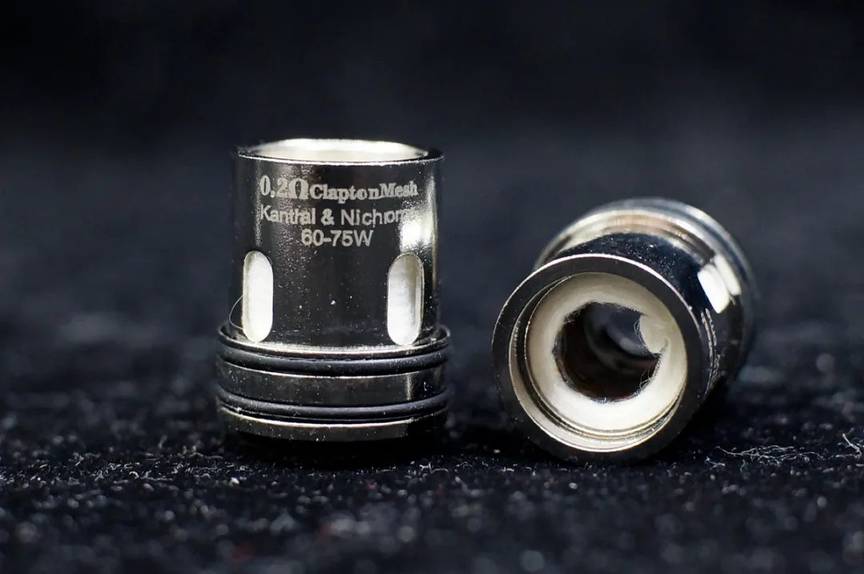 原厂配置了2颗同规格的0.2Ω成品芯,注意它上面的标识是克莱普顿的芯子,同时发热丝的材质还有推荐的功率也给你写的明明白白。