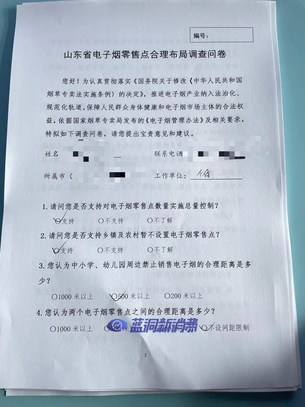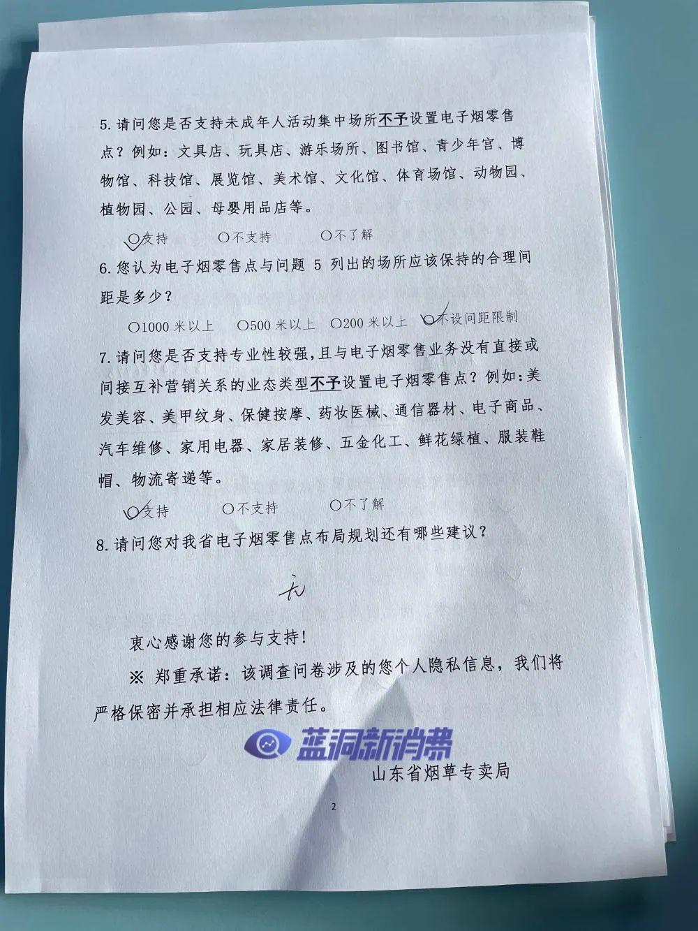 山东电子烟店主透露,今日他已经收到了山东省烟草专卖局发送的《山东省电子烟零售点合理布局调查问卷》。