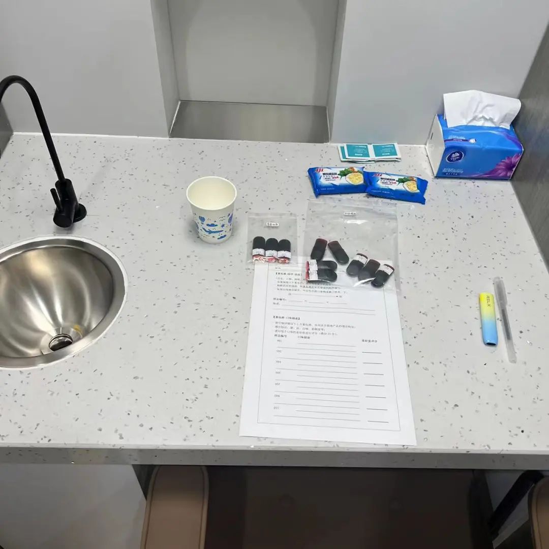 参观完实验室之后,进入了最为关键的烟弹盲品环节。悦刻对10位品鉴员发放了10颗并未标注口味的烟草风味弹,烟弹以数字编号代表身份,同时每个人都拿到了一张用来描述品鉴感受的表单。