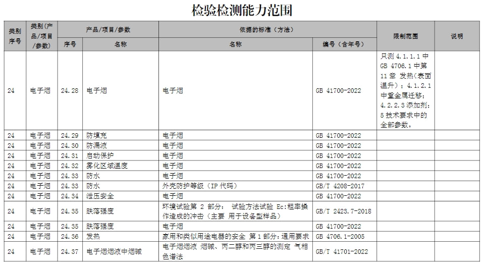 4月24日,从国家烟草局官网获知,国家烟草质量监督检验中心获得电子烟检验检测机构国家资质认定。