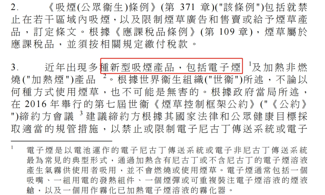 一直到去年的9月,中国香港才正式宣布全面禁止电子烟,然后10月的立法会,通过《2019年吸烟(公众卫生)(修订)条例草案》(条例草案),全面禁止电子烟等新型烟草产品。(这里注意的是,香港提及的电子烟,是包括含尼古丁和非尼古丁产品)