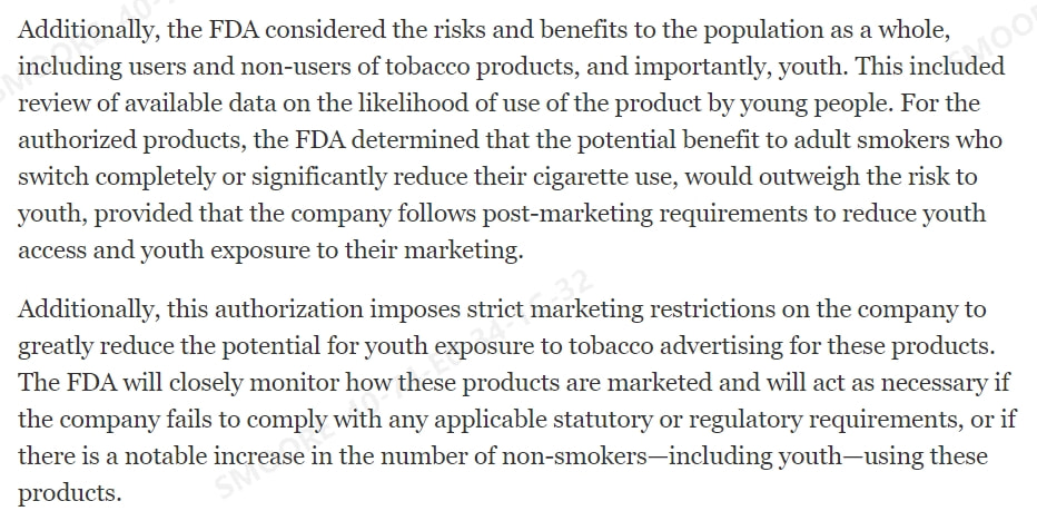 FDA对客户产品安全、减害、青少年保护等方面的认可