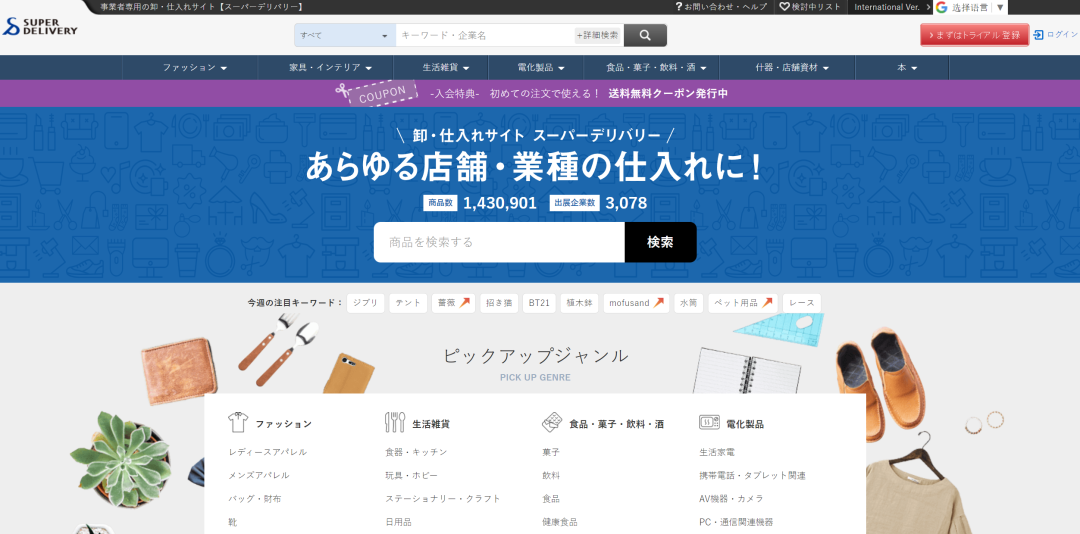 SUPER DELIVERY是日本较大的B2B网站,与超过2900家日本厂商合作,面向日本及海外134个国家,流通额已突破190亿日元。