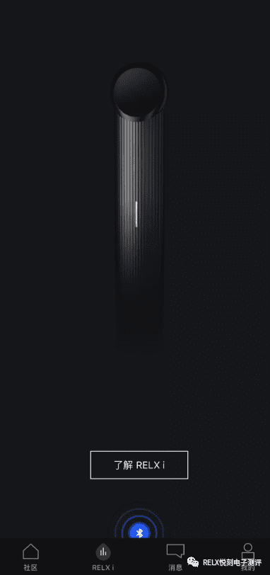 下载app后打开会发现底部通栏有一个RELX I的按钮,按照说明点击。
