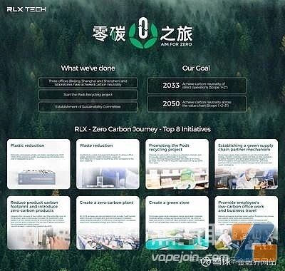 在Aim for Zero计划中,以RELX品牌电子烟闻名的悦刻将采取八项措施,在其价值链中实现净零碳排放的目标。