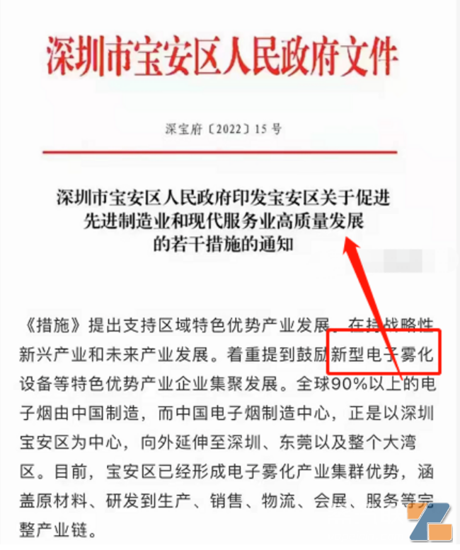 宝安政府红头文件重点鼓励新型电子雾化发展