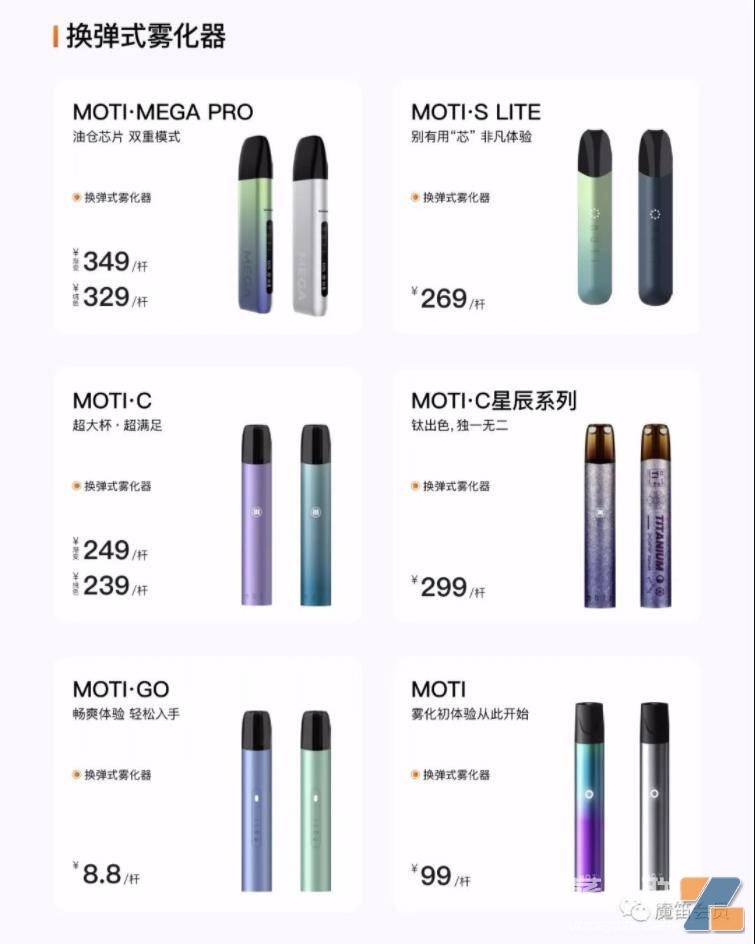 MOTI魔笛是中国领先的电子雾化器品牌,隶属于深圳雷炎科技有限公司..,集产品设计、研发、生产、营销、进出口和服务于一体。目前推出换弹式雾化器、开放式雾化器和一次性雾化器全矩阵产品线。MOTI魔笛以产品为核心驱动力,打造国际化的研发创新中心和2019实验室,坚持核心技术创新并运用到产品中,同时与全球顶级供应链建立深度合作关系。在确保安心品质下不断升级迭代雾化器,致力于为 用户提供极致且有趣的产品体验。 MOTI魔笛以优质产品力保存强劲上升势头,业务现已覆盖国内及海外,包括北美、南美、中东、东南亚、欧洲等多个国家和地区、同时,从成立初期至今,一致获得国际顶级投资机构青睐,投资方包括真格基金、MSA和玉资本、SIG海纳亚洲、弘晖资本、千合资本、华新投资、引力资本、KK集团等。