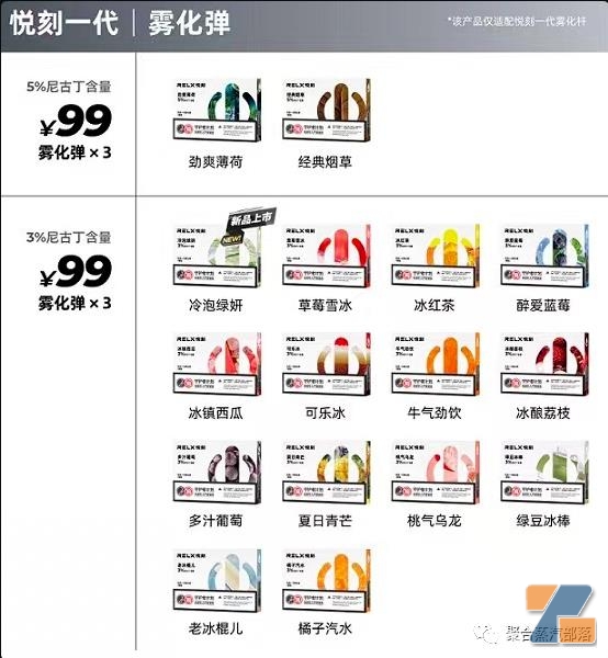 RELX悦刻系列产品价目表简介: