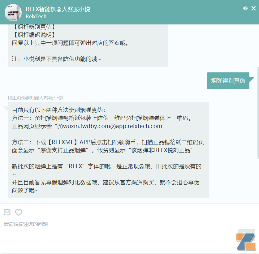 首先我们需要了解到,悦刻官方目前给出的唯一验证真伪方式有两种,第一种是关注RELX悦刻官方微信号之后用微信扫二维码获取积分,第二种是下载relxme这款悦刻官方的APP扫码获取嗨币。 下面是悦刻官方客服的回复