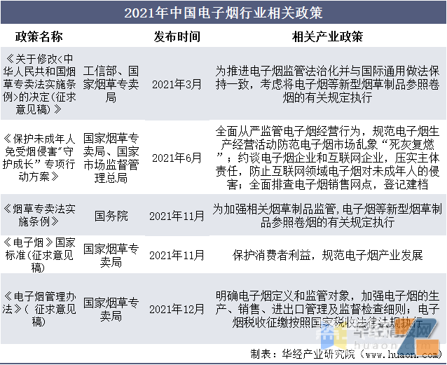 资料来源:《2021年电子烟产业蓝皮书》,华经产业研究院整理